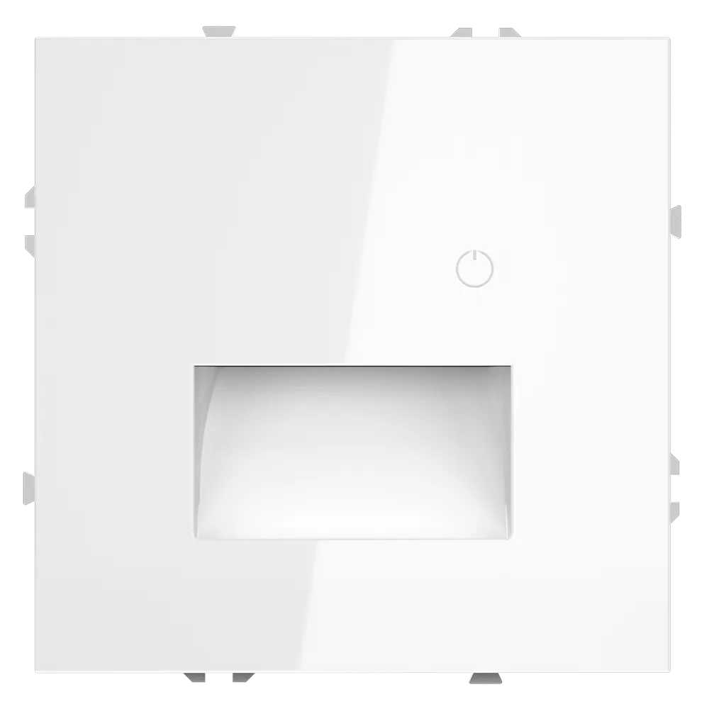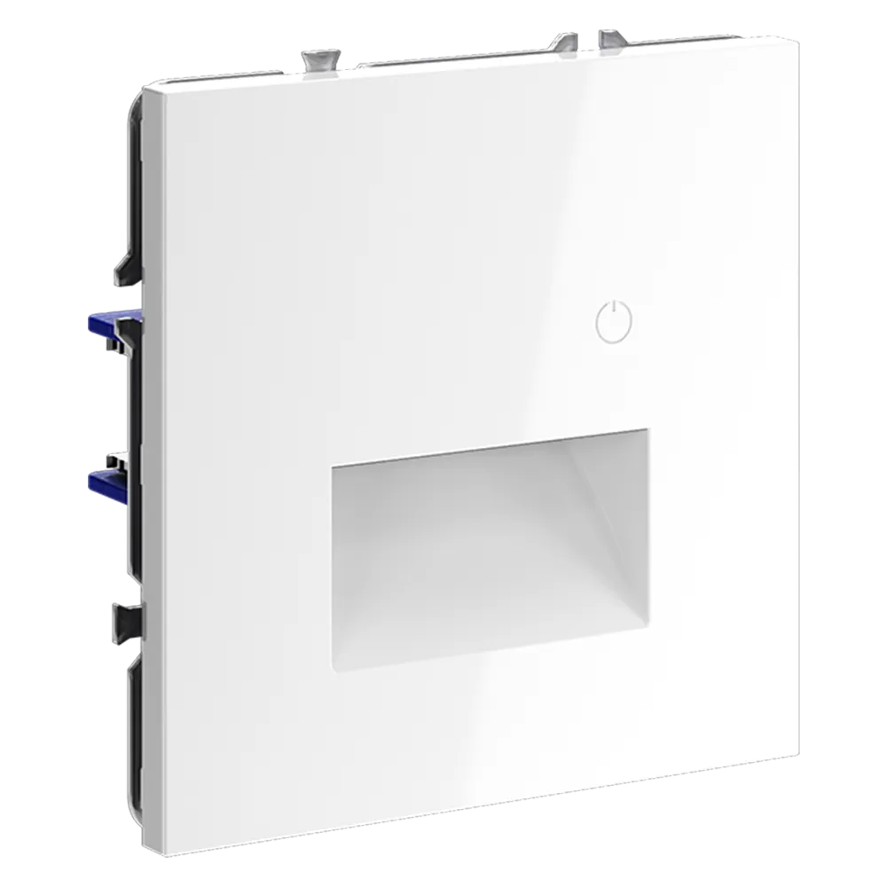 Подсветка устанавливается в стандартный подрозетник и совместима со всеми рамками серии S70 — пластиковыми и стеклянными, что позволяет интегрировать её в любую композицию на стене: рядом с выключателем, розеткой или терморегулятором.