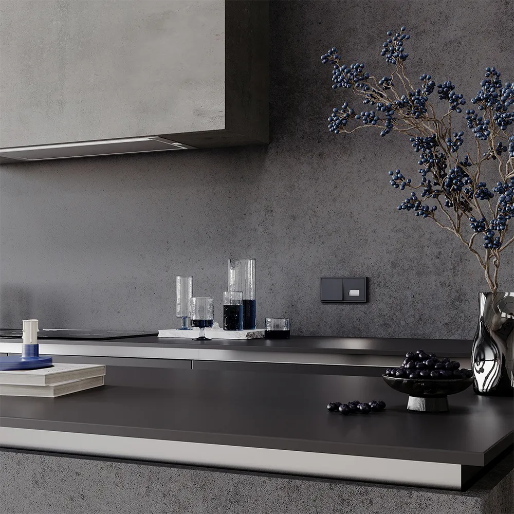 • Современная эстетика — графитовый оттенок ассоциируется с натуральным минералом, добавляя интерьеру природной глубины и благородства