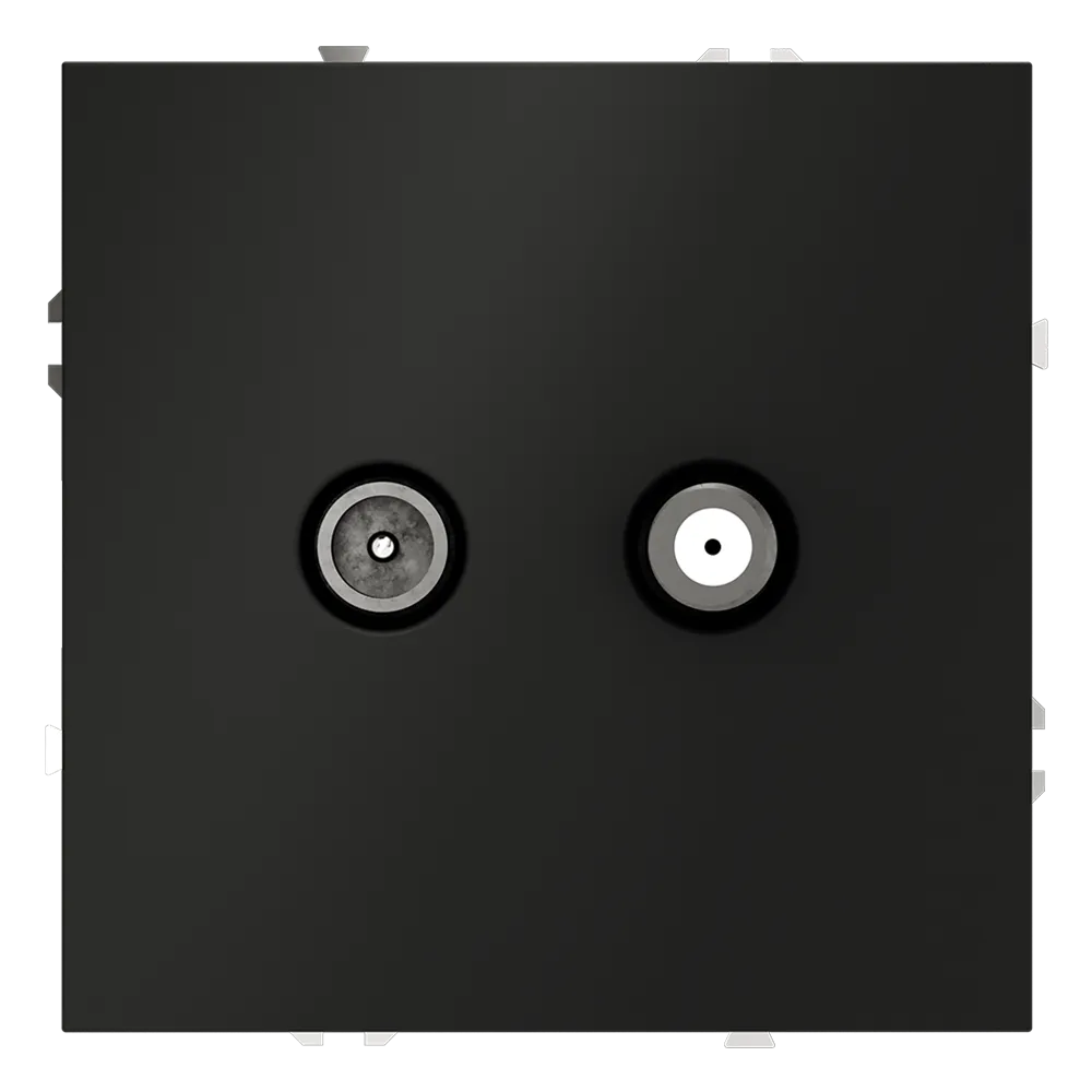 Розетка выполнена по оконечной схеме, что обеспечивает корректную передачу сигнала в системах коллективного телевидения и предотвращает помехи и отражения. Благодаря двум разъёмам в одном корпусе вы можете подключить как эфирное/кабельное ТВ, так и спутниковый ресивер — всё в одном компактном устройстве.