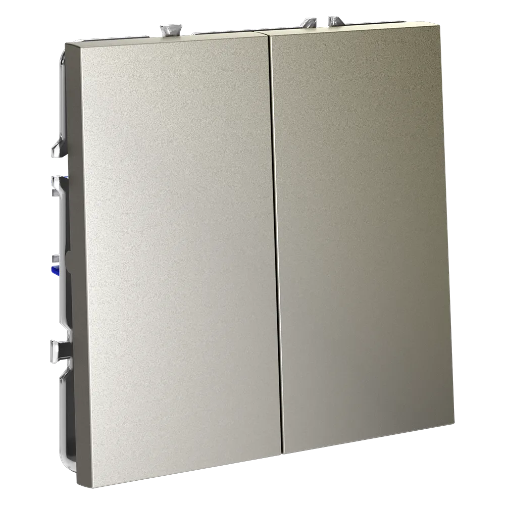 Двухклавишный выключатель самовозвратный VOLTUM S70 в цвете «шелк» — это современное и функциональное решение для одновременного управления двумя независимыми автоматизированными системами, такими как жалюзи и рольставни, ворота и шторы, вентиляция и сигнализация. Благодаря механизму самовозврата, каждая клавиша автоматически возвращается в исходное положение после нажатия, обеспечивая импульсное (кратковременное) управление без фиксации — идеально для систем, требующих точного и безопасного сигнала.