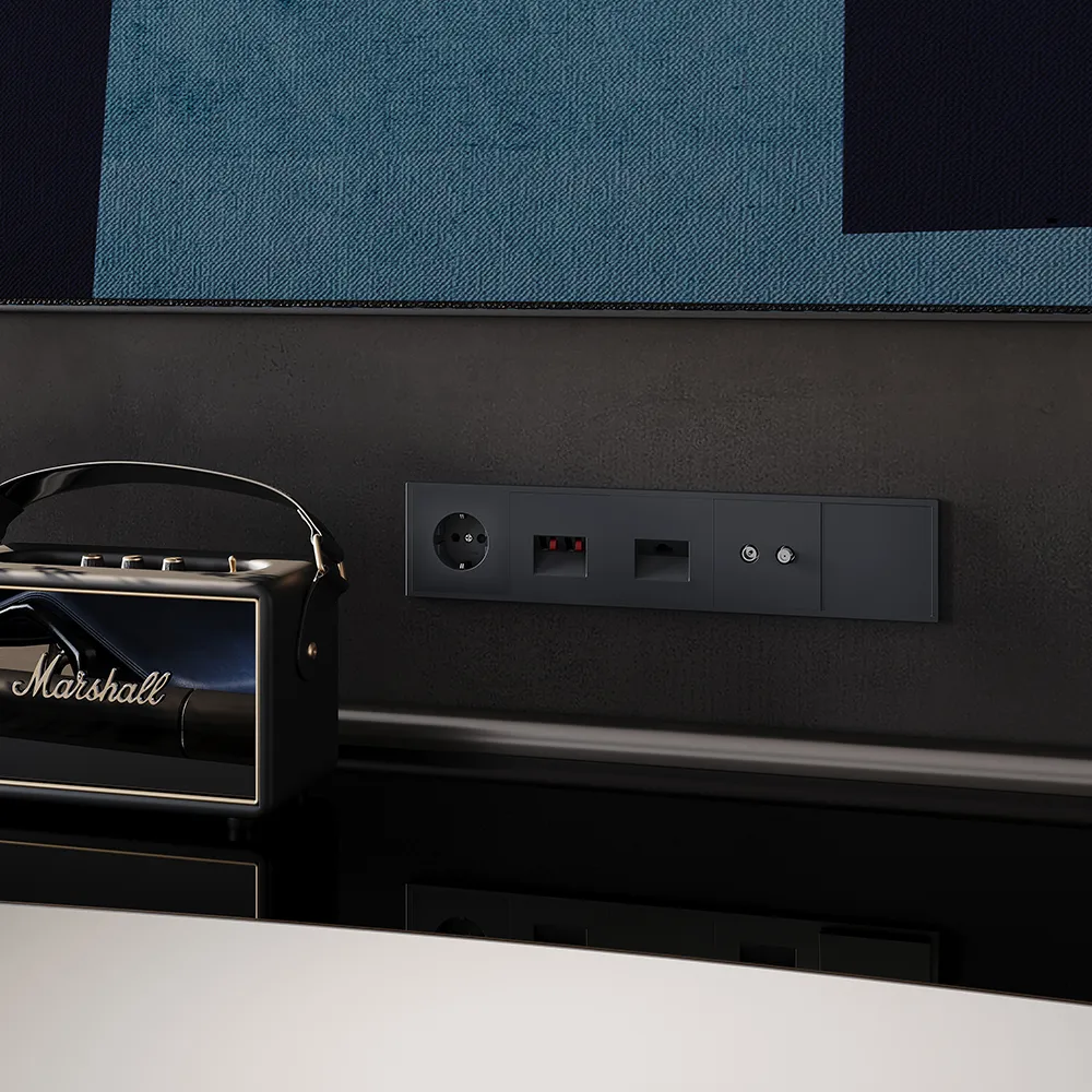 Розетка легко комбинируется с другими устройствами и рамками серии S70 — например, можно разместить рядом телевизионную розетку TV+SAT, электрическую розетку и USB-порт в одной рамке, создав единый медиаблок управления.
